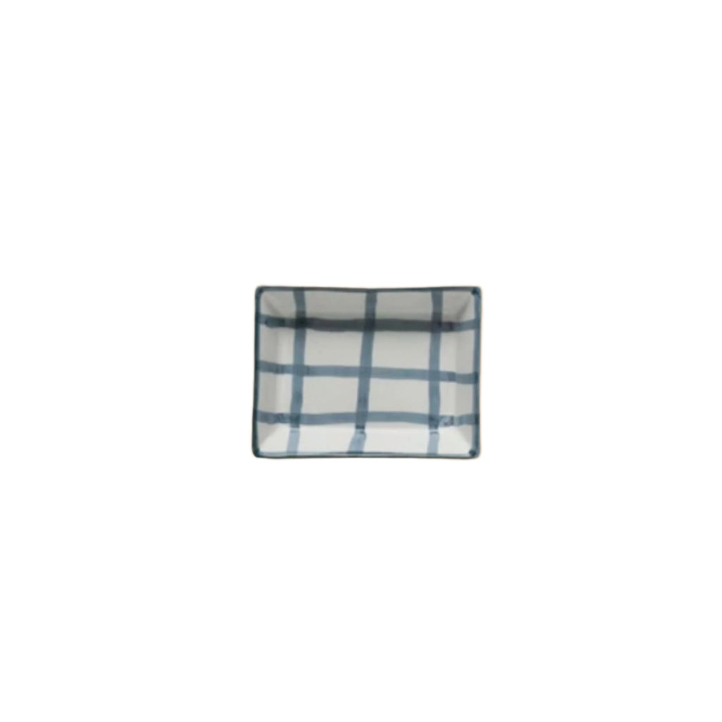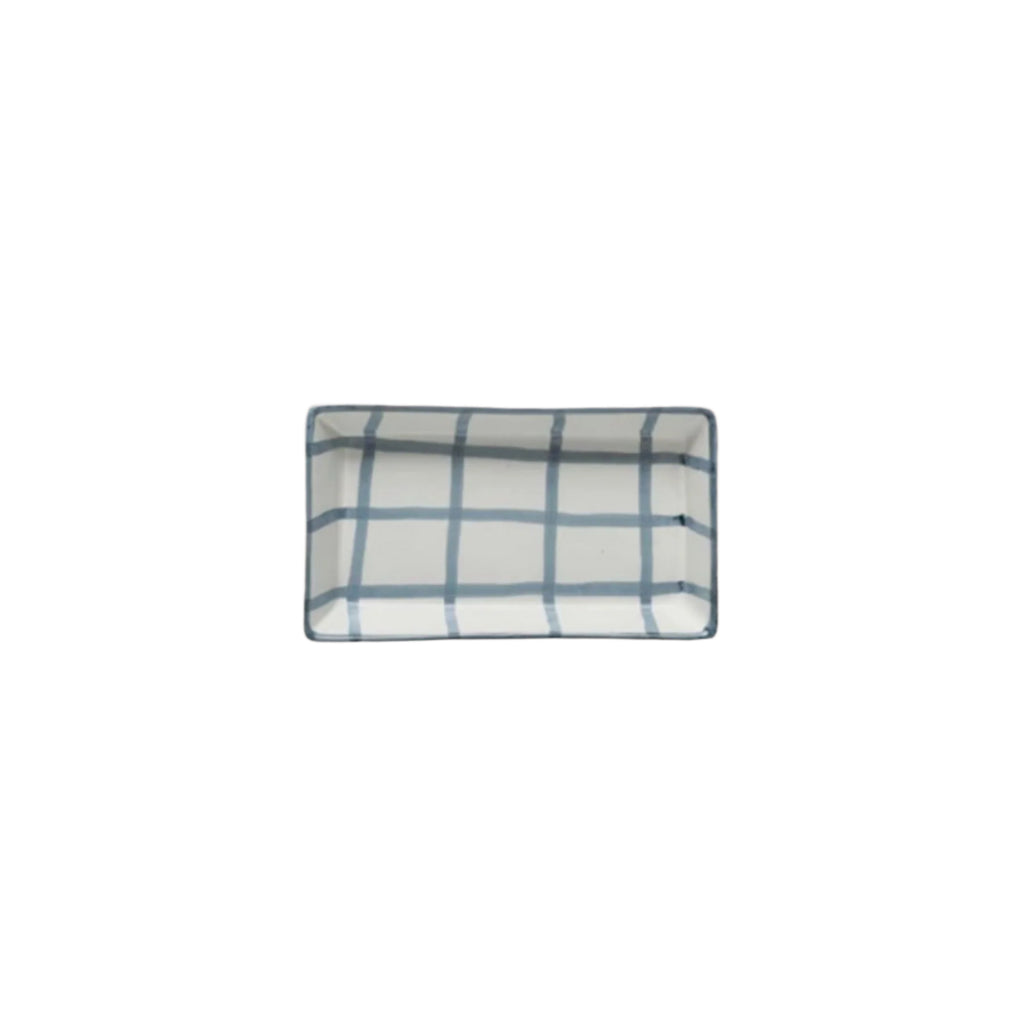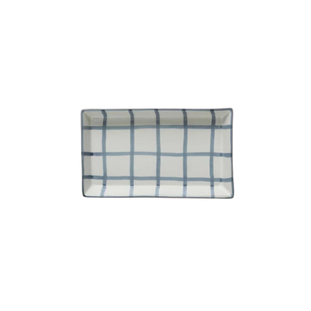 Each hand painted, these plates feature a blue and white plaid pattern with a unique reactive glaze finish. These plates are made out of stoneware and come in a set of 3, and are the perfect plates to serve guests.
