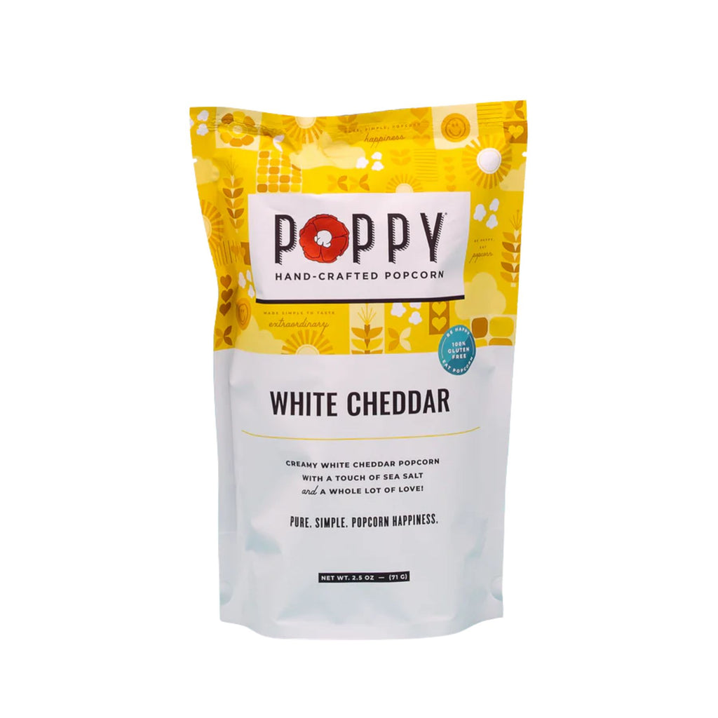 Poppy's White Cheddar popcorn is fluffy and crunchy, creamy and cheesy and the ultimate salty snack anytime!