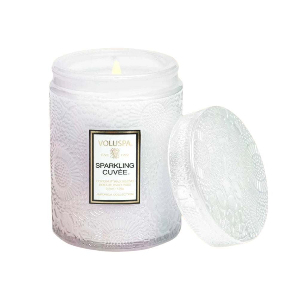 Pop a bottle of Voluspa’s finest blend, it’s time to celebrate! A mix of beautiful aromatic complexity, Sparkling Cuvée opens with vivacious fruit tones of Sparkling Wine, Pomelo, and Red Currant. The effervescence of Sparkling Wine is the heart of the celebration, with bubbles cascading to the surface, dancing and mingling with juicy Nectarine and Bulgarian Rose Petals.