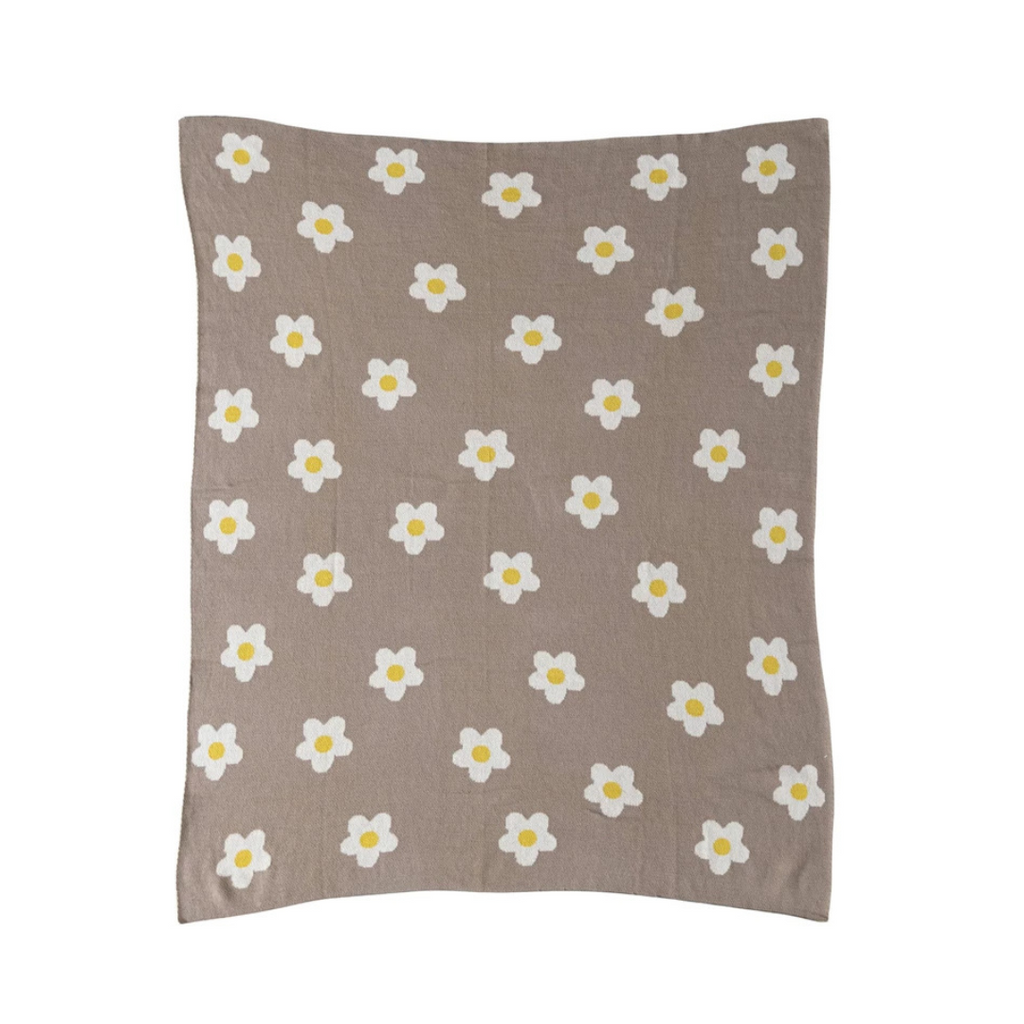Creative Co-op - Cotton Knit Baby Blanket with Flowers