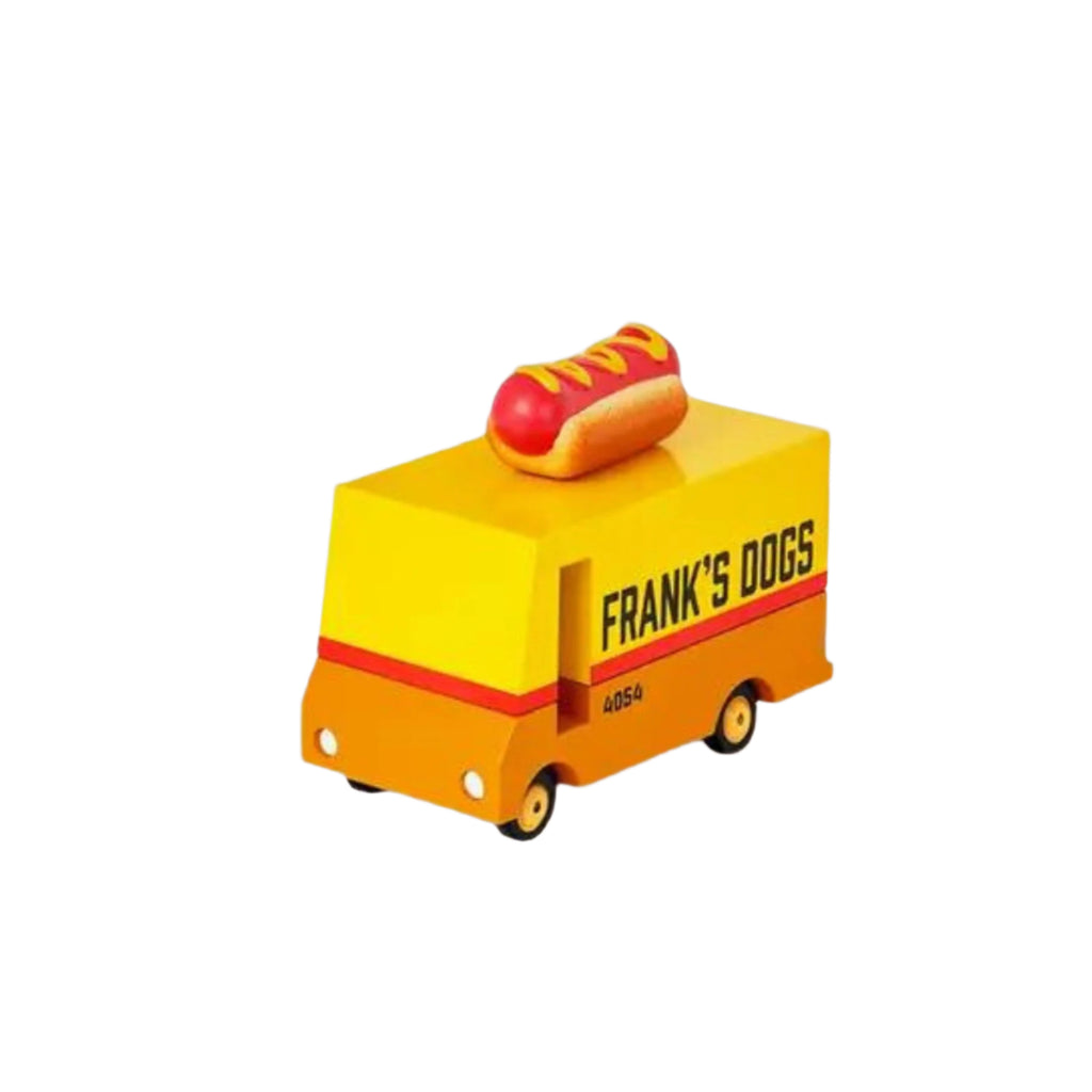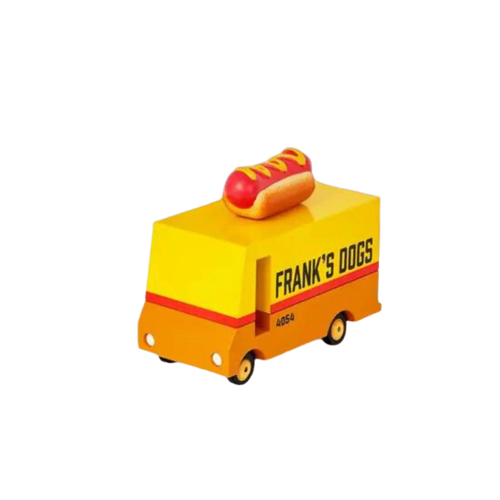 Our hot dog truck is a minimalist, design-focused, vehicular interpretation of the hot dog stand with a mustard-yellow top and a perfectly toasted base.