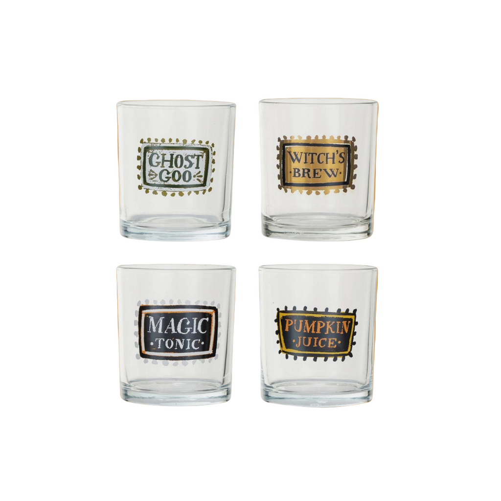 3" Round x 3-1/2"H 10 oz. Drinking Glass w/ Halloween Saying, Multi Color, 4 StylesDimensions: 3.1 x 3.1