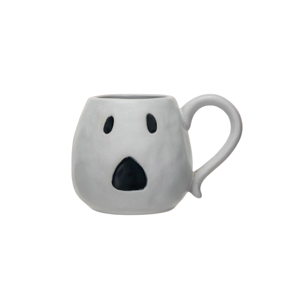 4-1/4" Round x 4"H 16 oz. Debossed Stoneware Ghost Shaped Mug, Reactive Glaze, Matte White & Black (Each One Will Vary)