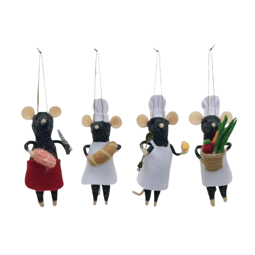 5-1/2"H Handmade Wool Felt Chef Mouse Ornament, Multi Color, 4 Styles