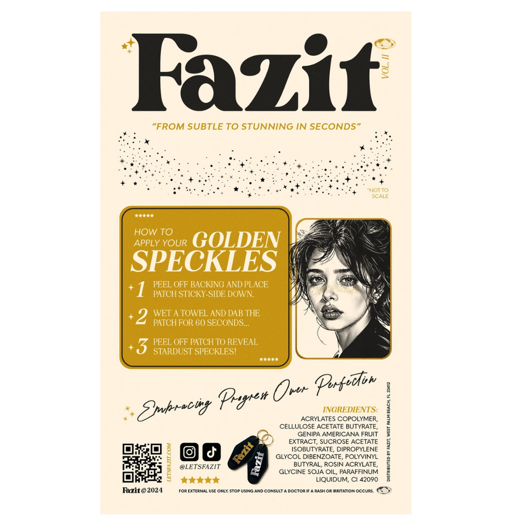 Fazit's Stardust Speckle patches aren't merely makeup — they're a statement. Our innovative makeup patches ensures a seamless application process, allowing you to unveil your luminous transformation in mere seconds. Simply press, pat, and peel to reveal effortless glamour. Each patch is adorned with shimmering, golden speckles to highlight your beauty like never before.