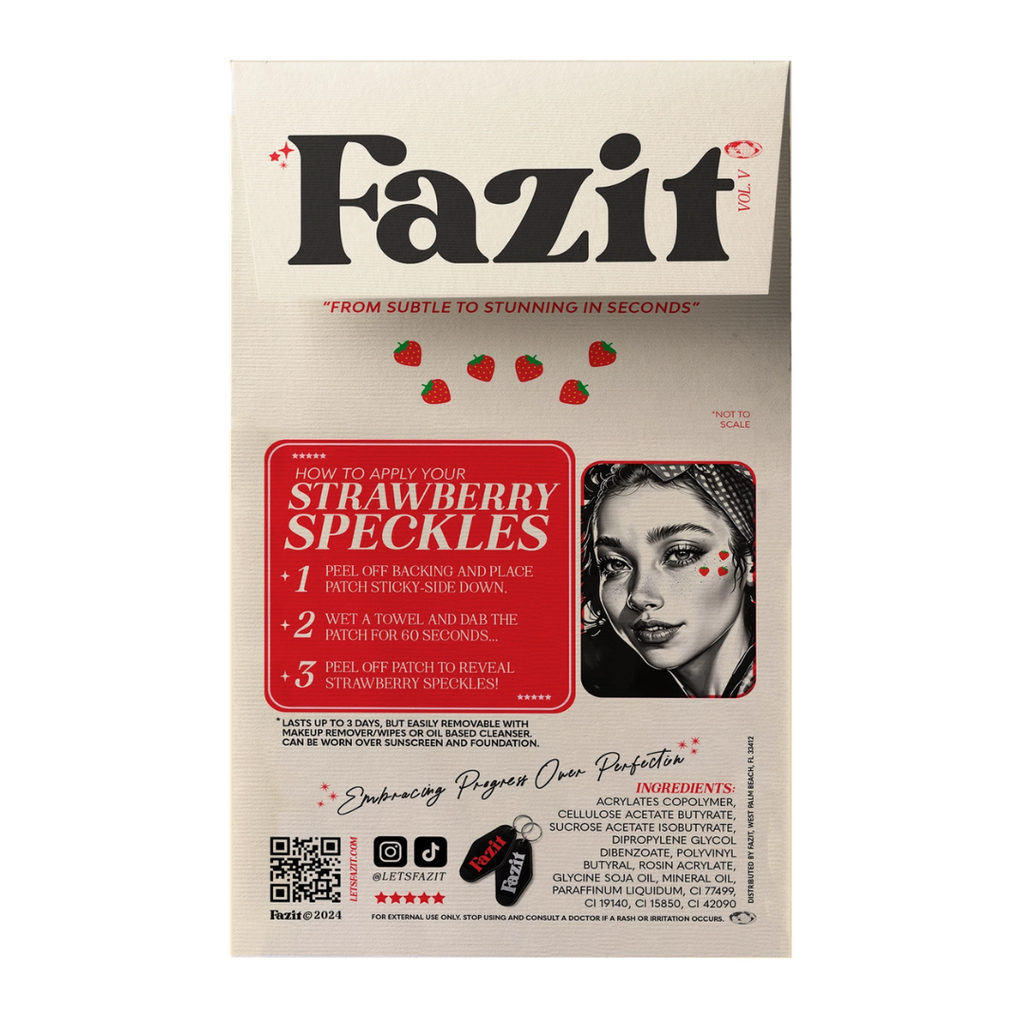 Fazit's Strawberry Patches aren't merely makeup — they're a statement. Our innovative makeup patches ensures a seamless application process, allowing you to unveil your sun kissed transformation in mere seconds. Simply press, pat, and peel to reveal effortless charm. Each patch is embellished with strawberry blush speckles to highlight your beauty like never before.
