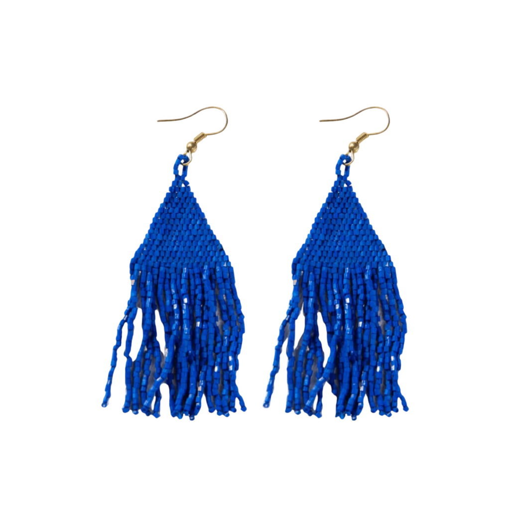 Part of Ink + Alloy's Luxe collection accessories, the luxe petite fringe earring is hand crafted by artisans in India. Delicate glass beads with an elegant shimmer are woven for a luminous, lightweight, and effortlessly cool beaded statement accessory.