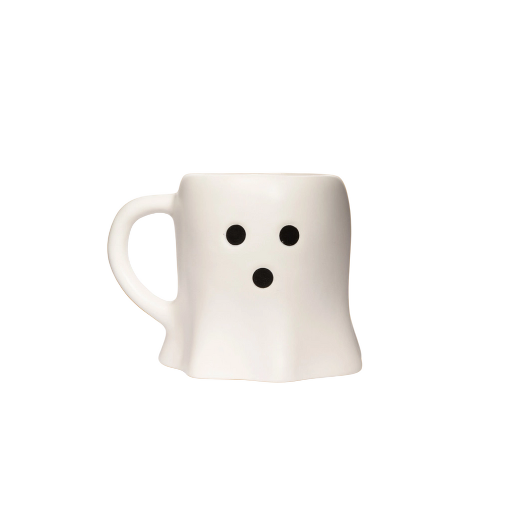 DETAILS: • 12oz Ceramic Style Mug • Size: 3.5" x 4" (5.5" w/ handle) • Cream Color with Ghost Face Design • Designed in the USA, Imported • Style No. CM137