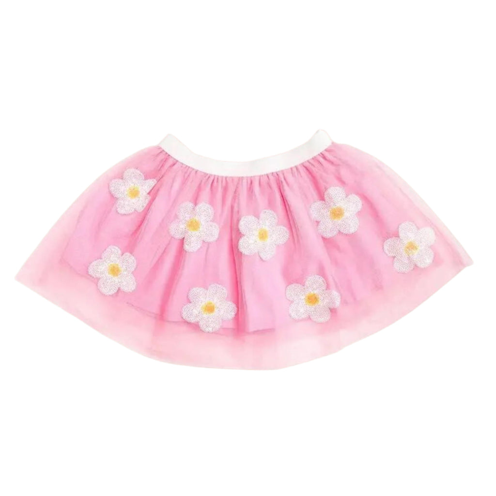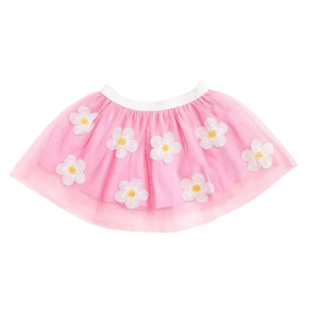 The pink daisy sequin tutu is a fun skirt and dress up tutu to welcome spring!