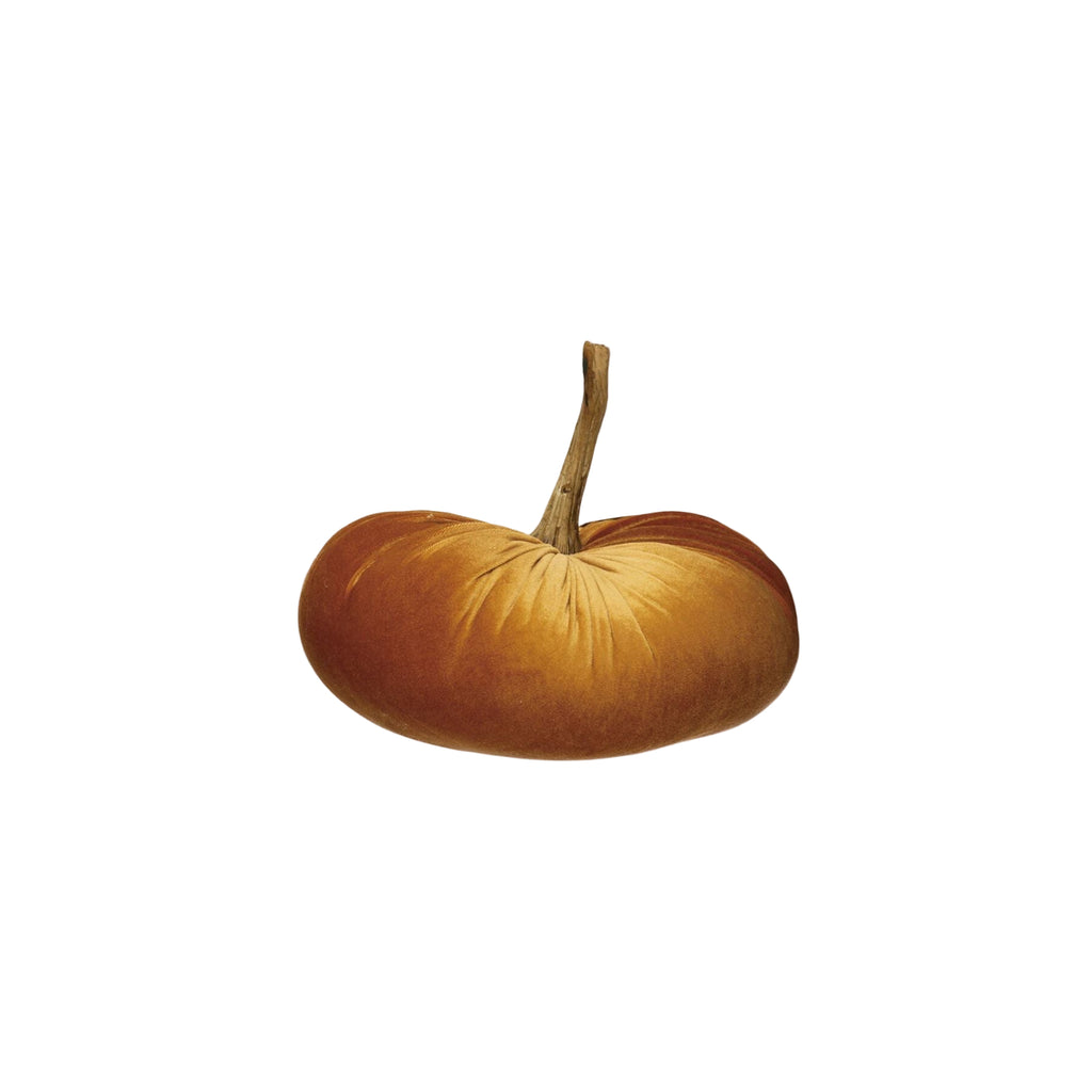 9-3/4" Round x 9"H Velvet Pumpkin with Resin Stem, Persimmon (Orange) Color