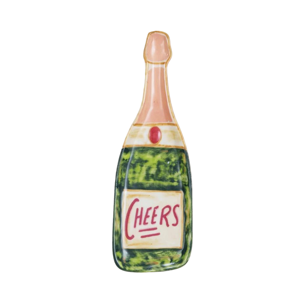 Creative Co-op - Stoneware Champagne Bottle Shaped Dish "Cheers"