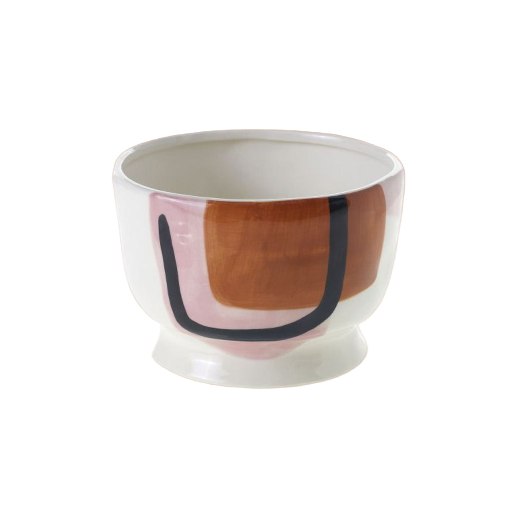 This ceramic compote features an AD exclusive decal design, making a modern statement with fresh yet retro colors and shapes.