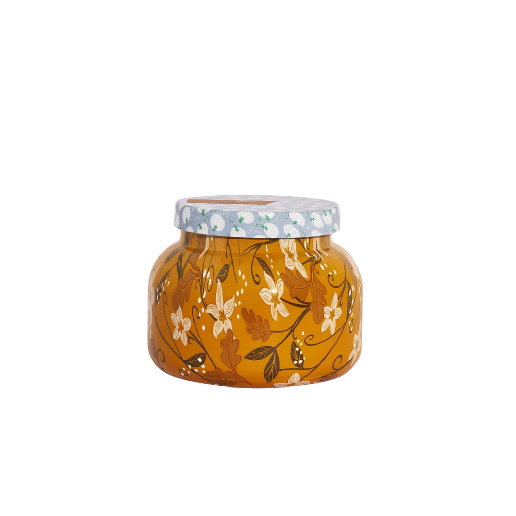 This Pumpkin Dulce Holiday Pattern Play Signature Jar is filled with gourmand notes of white pumpkin, sweet gingersnap, nutmeg and whipped vanilla. Wrapped in a floral orange design, you'll have just what you wished for this fall!