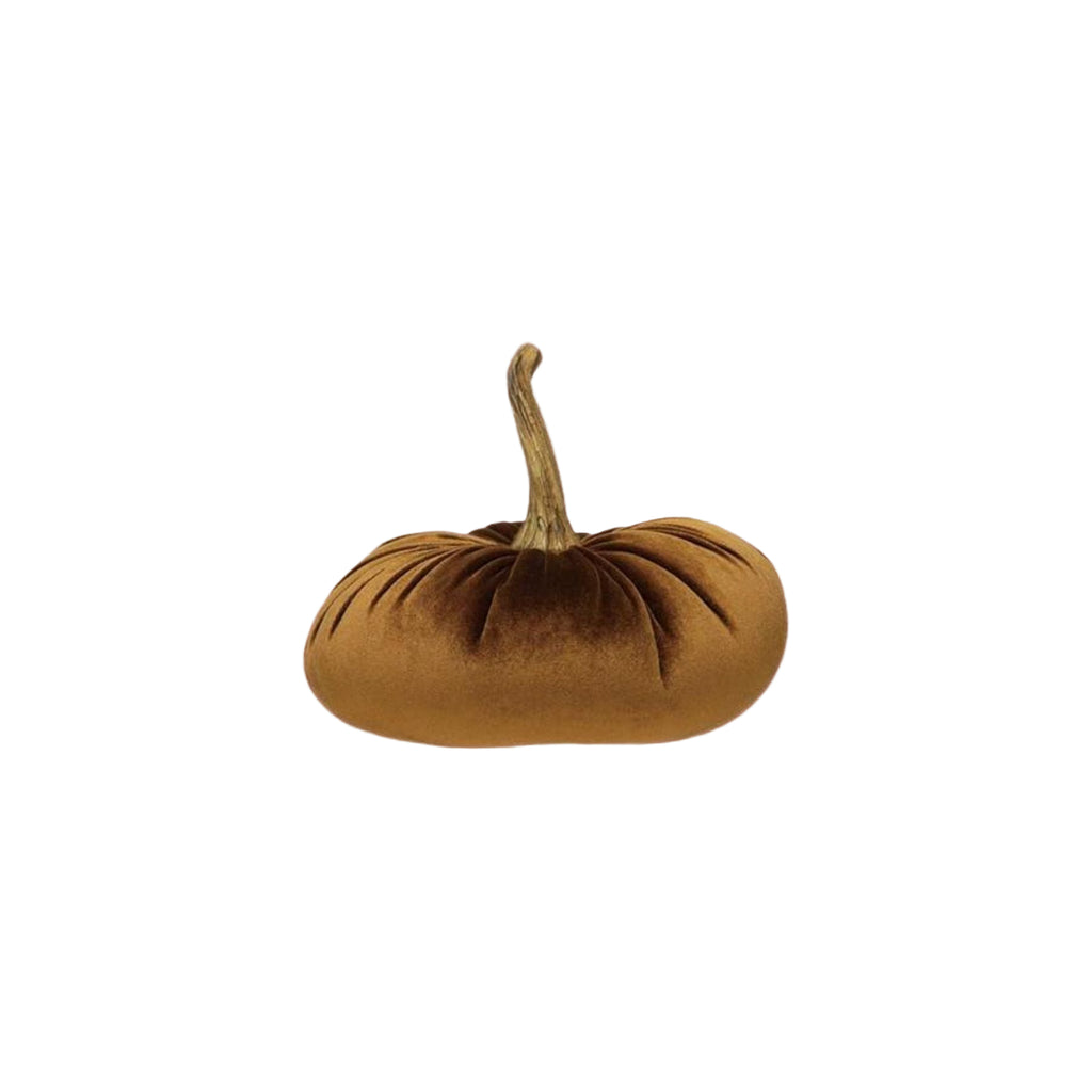 9-3/4" Round x 9"H Velvet Pumpkin with Resin Stem, Brown Color