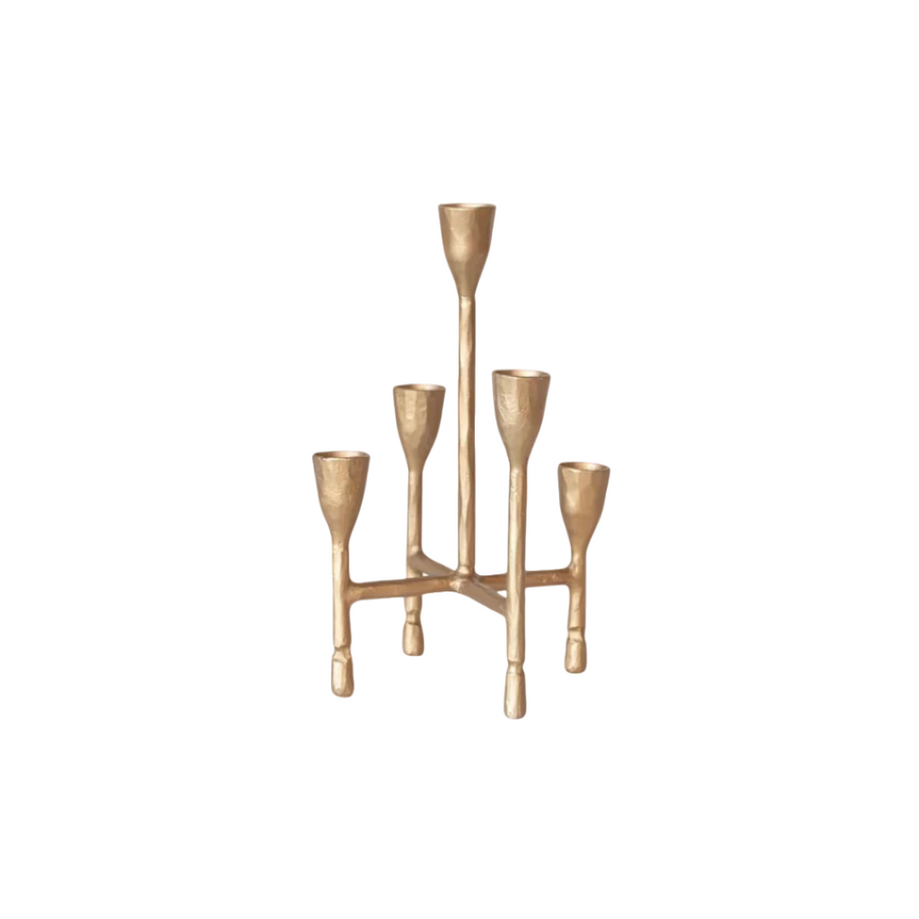 6-1/4" Square x 9-3/4"H Hand-Forged Cast Iron Candelabra, Antique Gold Finish (Holds 5 Tapers)