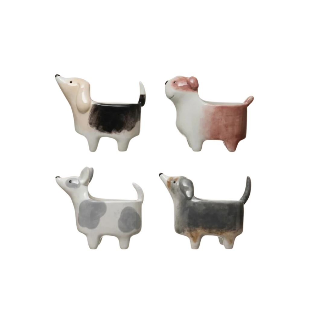 This little dog planter is waiting to carry some flowers or greenery. It is a very versatile container and can also be filled with cotton for the bathroom or packets of sweetener for the kitchen table.