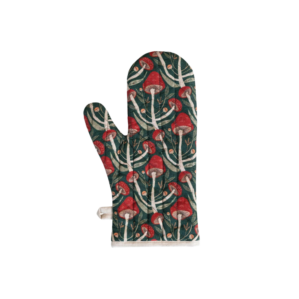 Creative Co-op - Quilted Cotton Oven Mitt with Mushrooms Pattern