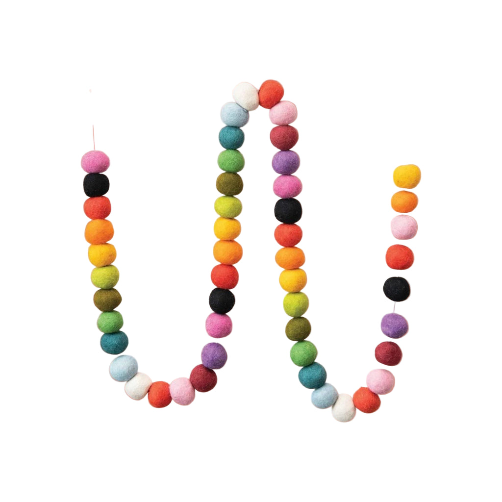 72"L Wool Felt Pom Poms Garland, Multi Color