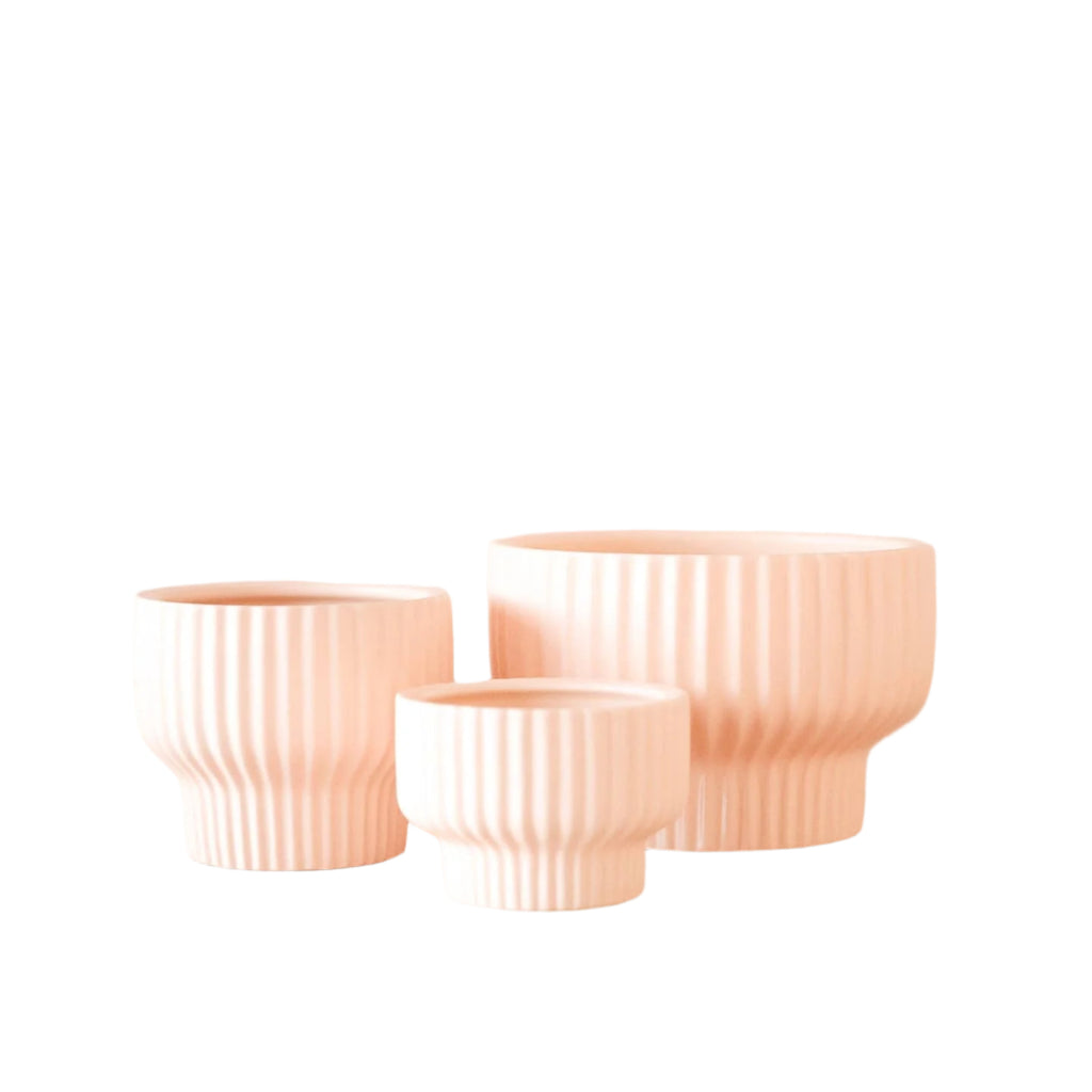 Perfect for succulent + cacti arrangements, a potted plant and more, the Presley Pedestal Planter in the shade Ballerina features a ribbed pedestal that gives it a stylish texture that's just enough to stand out from the crowd!