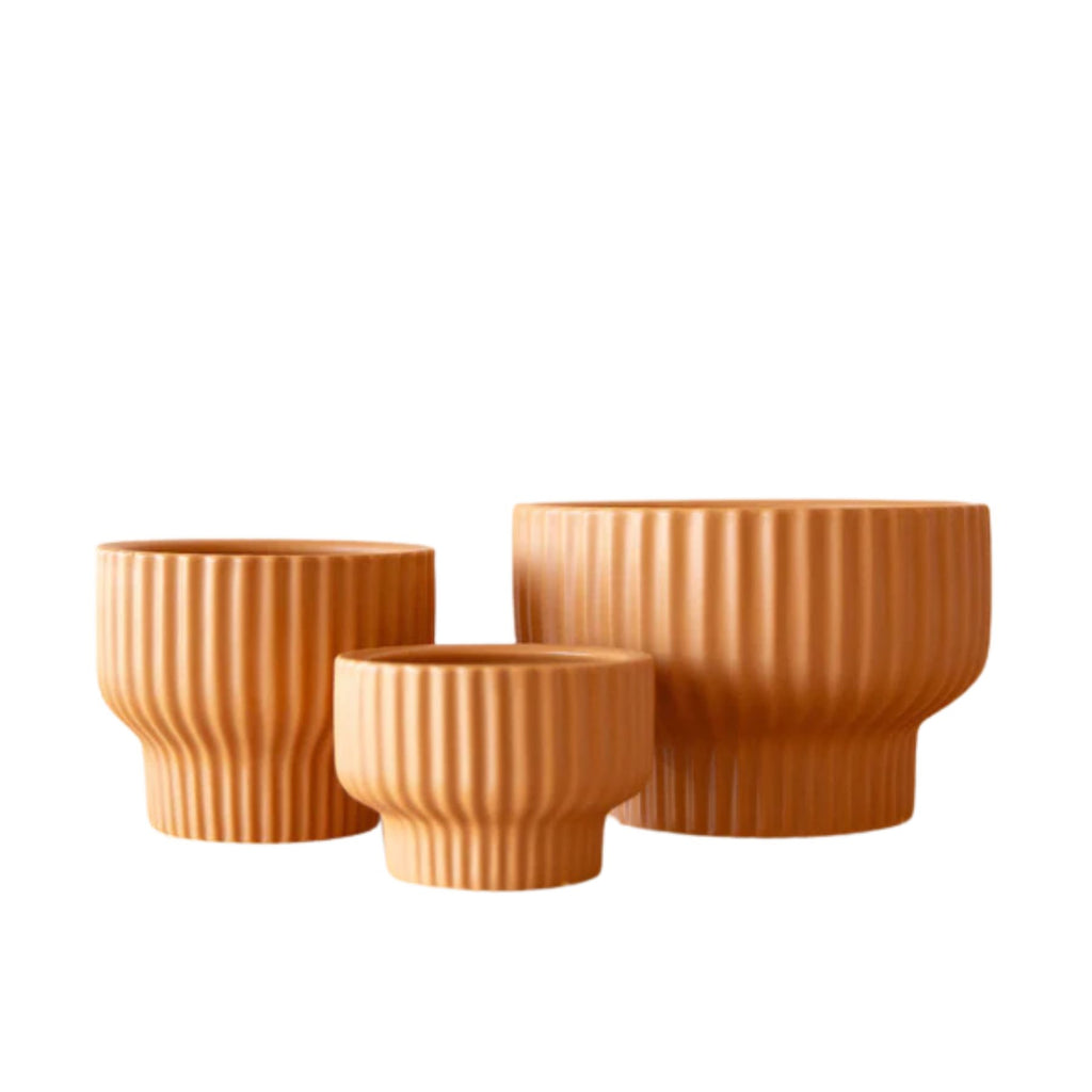 Perfect for succulent + cacti arrangements, a small plant and more, the Presley Pedestal Pot in the shade Ginger features a fluted pedestal that gives it a stylish texture that's just enough to stand out from the crowd!