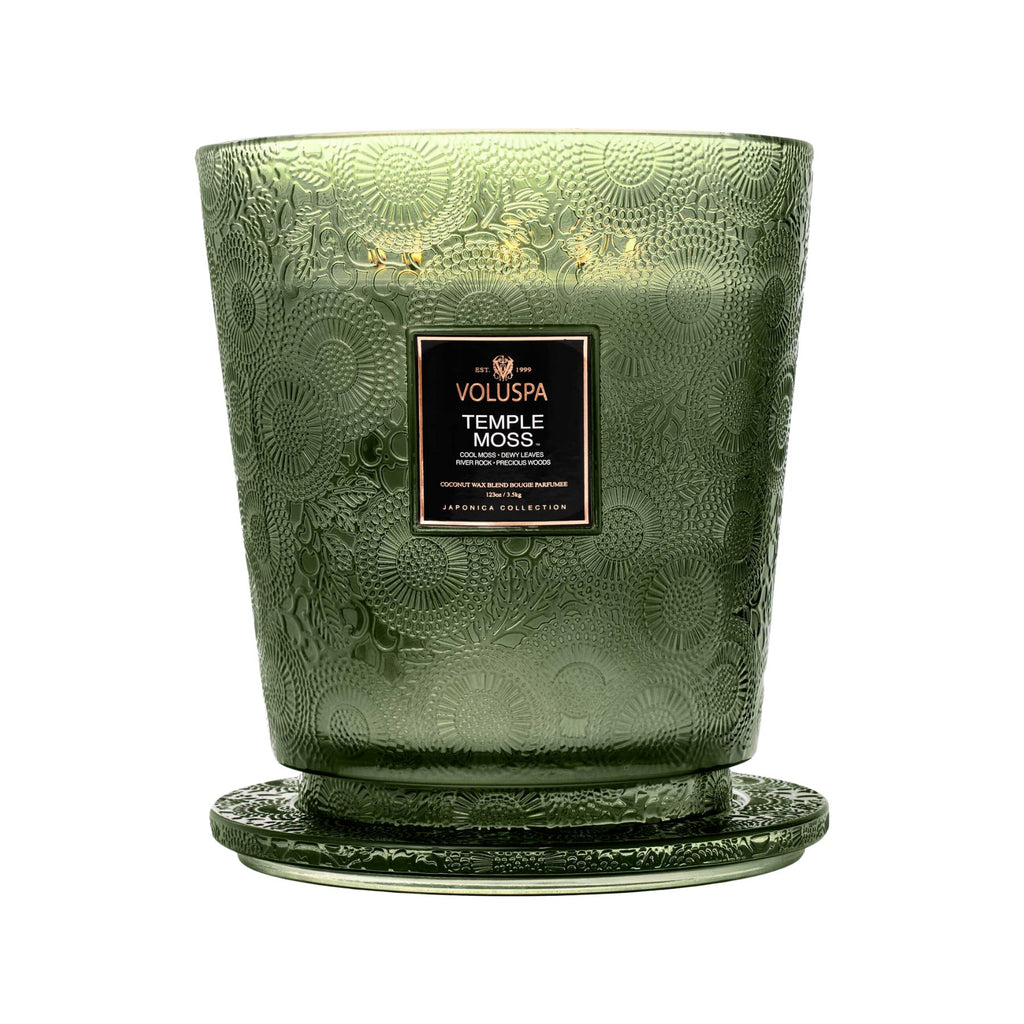 Voluspa invites you to seek solace in the forest floor. Ground down in the healing notes of cool moss, dewy leaves, wet stones and warm sun peeking through the thicket of Hinoki branches. The Master Perfumer herself, Mother Nature, will guide you to tranquility through rhythmic sights, sounds and scents of her lush forest. All are welcome to wander the aromatic grounds of Temple Moss.