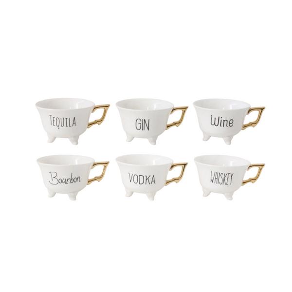 Creative Co-op - Stoneware Footed Tea Cup with Gold Electroplating 6 oz.