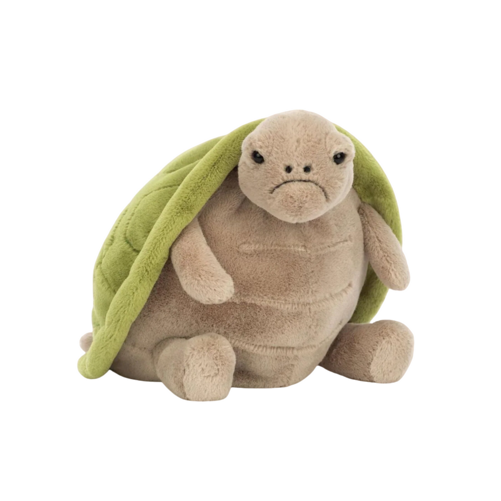 Timmy Turtle needs a friend to cheer him up – or someone to have a good grumble with! This soft, sturdy guy has a green textured shell, embroidered fudge fur and squeezable feet. Don't be fooled by the face – Timmy gives surprisingly good hugs!