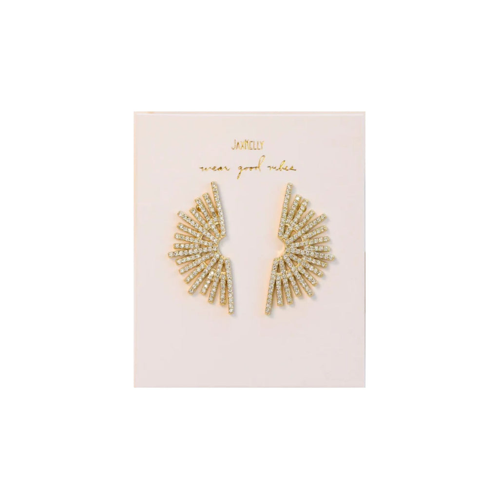 These Sunburst Studs bring an elegant and stylish twist to any look. They feature large drop earrings adorned with a sunburst pattern of pavé stones. These earrings will elevate your style with their timeless sophistication, perfect for any special occasion.