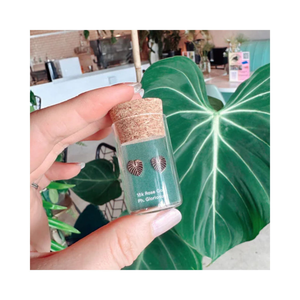 Plant Dosage - Philodendron Gloriosum Plant Studs - 18k Rose Gold Plated