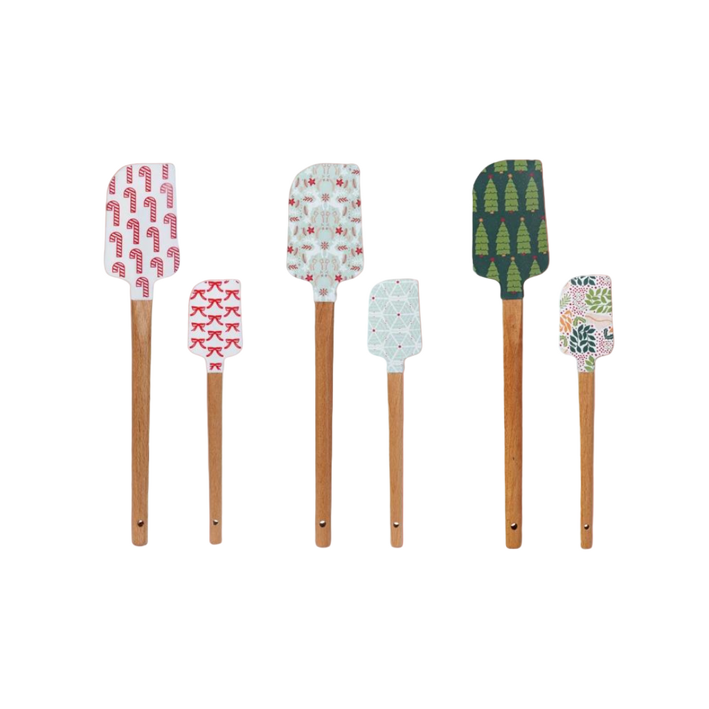 Creative Co-op - Silicone & Wood Spatulas with Holiday Pattern
