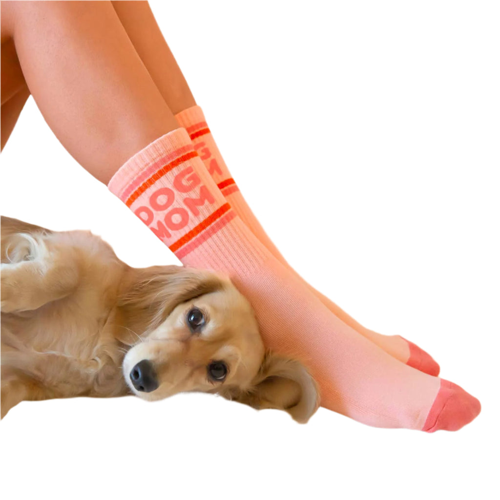 Elevate your sock game with our Dog Mom Striped Ribbed Crew Socks! Adorable and cozy, they are the perfect gift idea. Accessorize any outfit with these must-have socks. The ultimate addition for any dog lover's wardrobe.