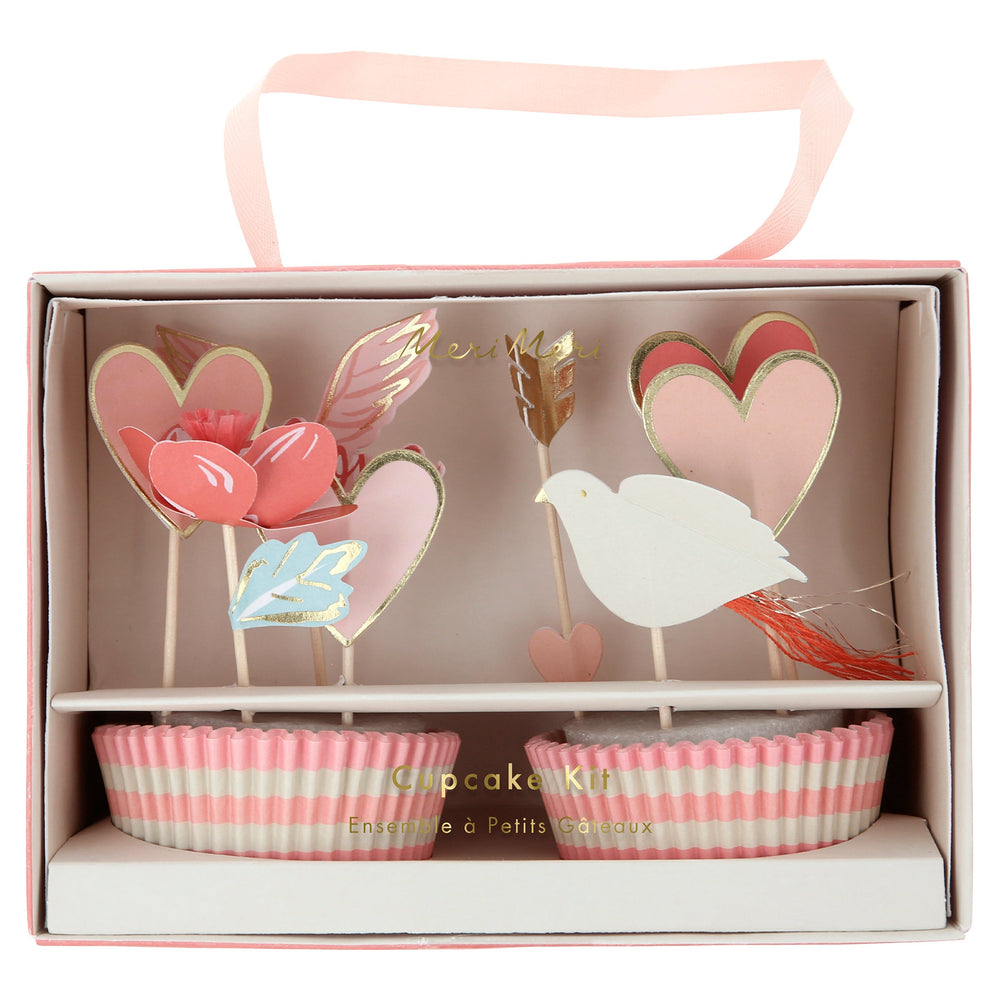 Make wonderful cupcakes with this romantic cupcake kit - they'll look amazing on display and will be the highlight of your Valentine's Day party. The toppers come in 5 different designs of love hearts, birds, arrows, flowers and the the word “Love” with wings. The cases feature stripes in sensational shades of pink.