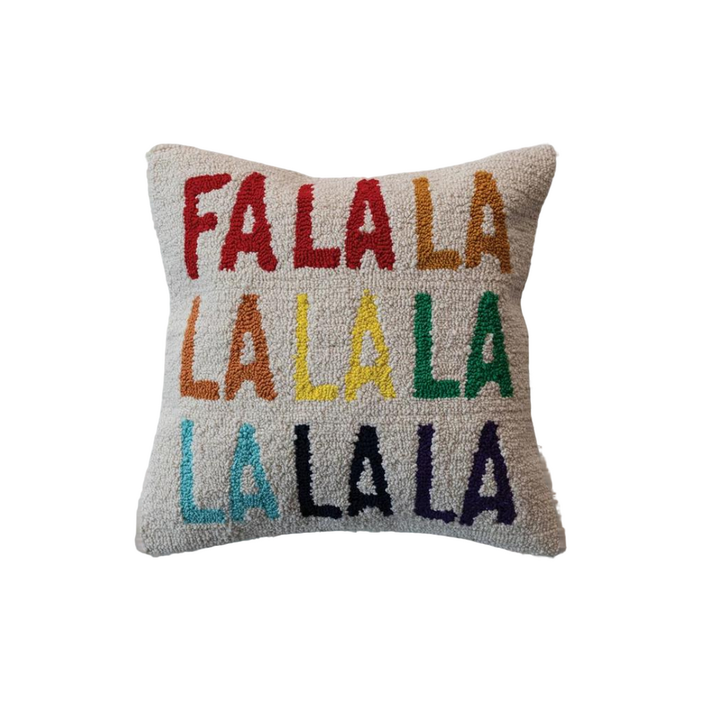 This square pillow is a celebration of the holiday spirit, with its multicolored tufted design spelling out the merry refrain "FALALALALALALALALA". The cotton blend cover is as soft as it is colorful, and the polyester fill provides just the right amount of support for a quick nap or a long winter's rest.