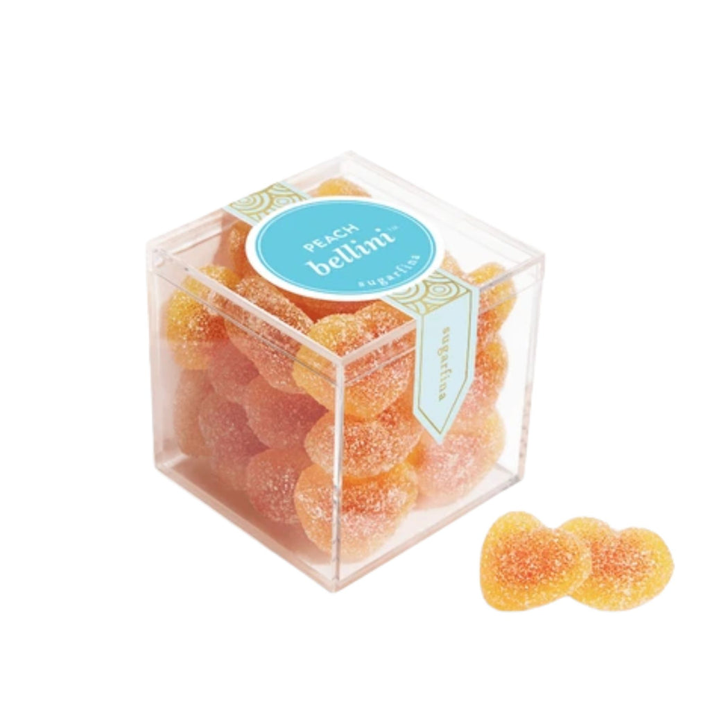 These orange and pink gummies are filled with a juicy peach flavor and dusted in sweet and sour sugar crystals.