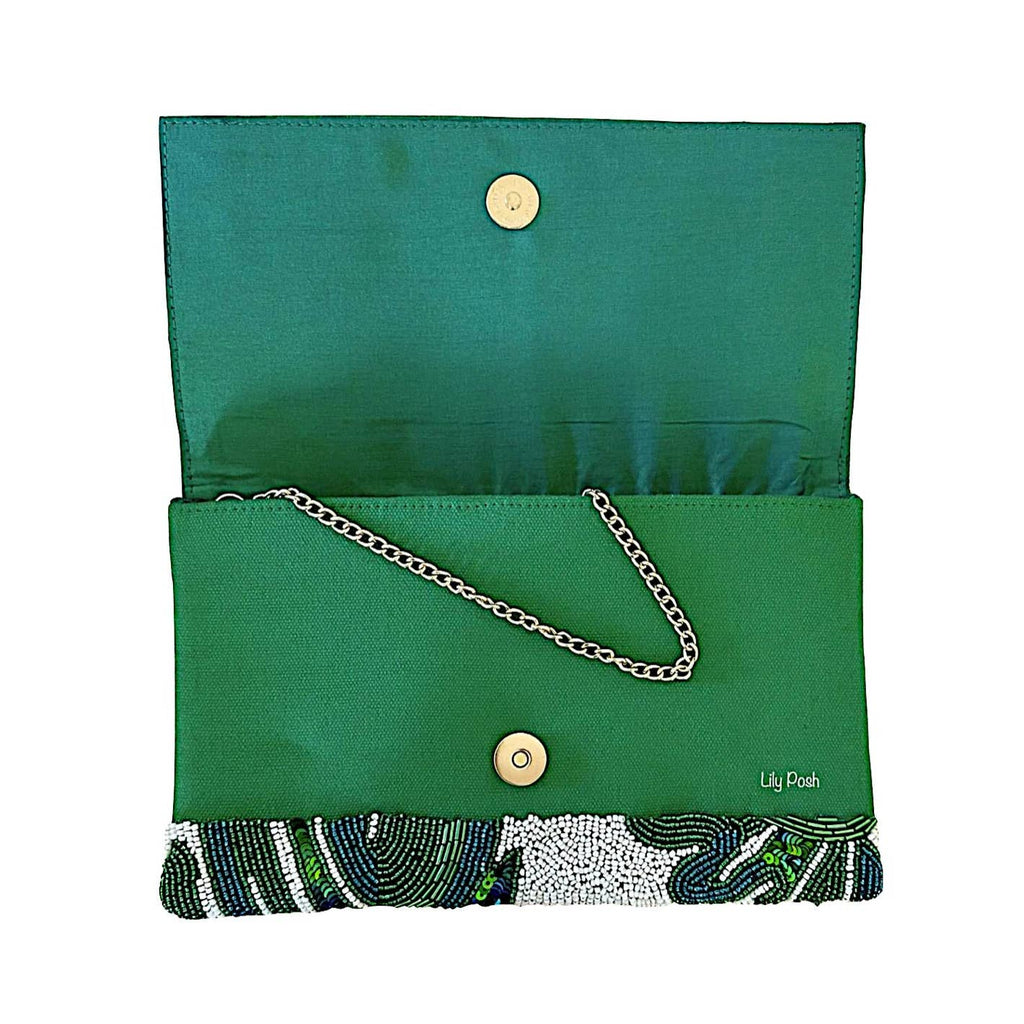 Lily Posh- Beaded Leaf Clutch Crossbody Bag- Bridal Clutch, Tropical